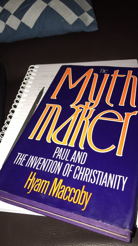 Meanwhile, as I’m done with my Cold War research for this week’s recordings, I’m reading an actual hardcopy book (I typically only read ebooks) that I bought from eBay because it wasn’t available in a digital edition: THE MYTHMAKER: PAUL AND THE INVENTION OF CHRISTIANITY by Hyam Maccoby (1986). Maccoby was a British Talmudic scholar who makes the case that Paul was born a gentile, converted to Judaism, and later invented Christianity. He believes Jesus was a Pharisee who would have been horrified over what Paul did in his name.